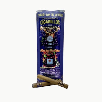 The Grapescotch x Cherry Dosido Cigarillos are a true One of a Kind indulgence. Each 2g, 2-pack is expertly rolled with a wood tip, blending Mercy Grown’s Grapescotch flower (Grapes & Cream x Butterscotch) with Cherry Dosido hash from Nasha. This premium pairing delivers layers of sweet grape, creamy vanilla, and caramelized funk, perfectly balanced by rich cherry, earthy spice, and a smooth, gassy finish. The aroma is decadent and complex, while the effects land bold and blissful - ideal for savoring solo or sharing. MadebyMercy with top-shelf flower and artisan hash, these infused cigarillos are crafted for those who appreciate flavor, potency, and craftsmanship in every pull.