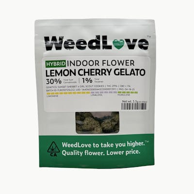 WeedLove brings you another fan favorite with the legendary genetics of Sunset Sherbet and Girl Scout Cookies! This strain boasts a tantalizing aroma of zesty citrus, ripe cherries, and a touch of peppery gas. Perfectly balanced, Lemon Cherry Gelato offers uplifting euphoria paired with calming relaxation, making it ideal for unwinding or enjoying social moments.