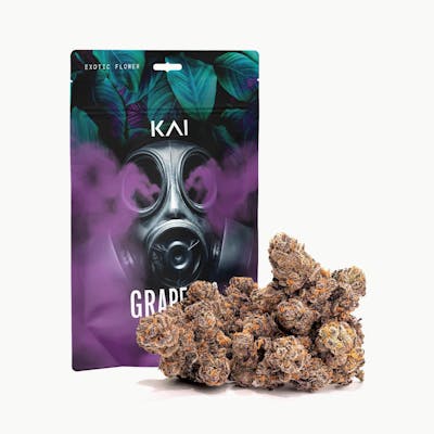 Grape Gas Jet Fuel Gelato X Grape Pie Even Hybrid Flavors: Sweet and Spicy, Berry, Diesel Effects: Euphoric, Mental Cognization, Relaxing —- About The Strain —- Grape Gasoline is an evenly balanced hybrid strain (50% indica/50% sativa) create through crossing the delicious Jet Fuel Gelato X Grape Pie strains. When it comes to the flavor of Grape Gasoline, the name says it all. This bud packs a sweet and fruity berry grape flavor with hints of savory gasoline and dank diesel. The aroma follows the same profile but to the extreme, with a heavy pungent diesel overtone accented by spicy dank berries and earthy grapes. The Grape Gasoline high hits just as hard as the flavor, with energizing effects that quickly fade into happy soothing relaxation. You'll feel a mental energy influx hit you a few minutes after your final exhale, launching through your brain and pushing out any negative racing thoughts. You'll feel creative with a light sense of focus that has you fading in and out of existence at times. A relaxing body high comes next, washing over you and settling down aching or painful muscles and joints. ----------------------------------------------------------------------------------------------------------------------- —- About The Brand —- KAI is the energy of the here and now. We craft custom experiences, one step at a time. As expert cultivators and retailers, our work is to nurture the relationship between the human experience and the dimensional power of mindfully made cannabis. #ShiftTheMoment with products made with love. Locally grown in Adrian, Michigan – KAI delivers consistency from seed to harvest. Explore the results of a passionate cultivation team, years of process-perfection, and hand-selected, reputable genetics.
