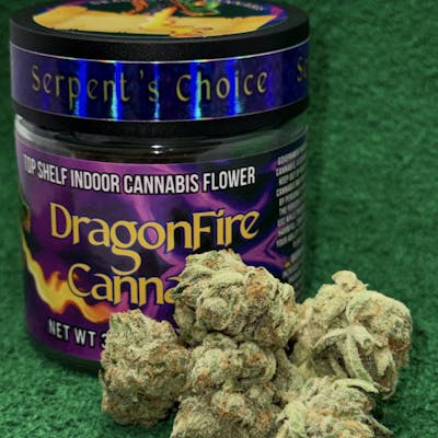 DragonFire SERPENT'S CHOICE - Kush Crasher, INDOOR (I/H) 26.18% THC 3.5g