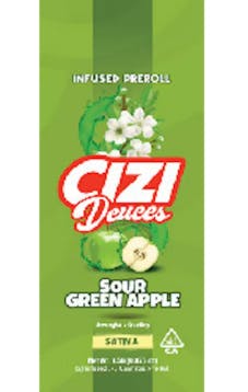 CIZI SOUR GREEN APPLE .75G 2 PACK LIQUID DIAMOND AND KIEF INFUSED PREROLLS