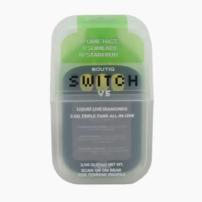 Boutiq Switch V5 3-in-1 Disposable Vape Lime Haze (Sativa) x Slimeade (Indica) x Starfruit (Hybrid) delivers triple-strain versatility in one high-THC cannabis device. Built with an innovative three-chamber design, this premium disposable vape allows seamless switching between flavors and effects with every inhale. Enjoy the bright citrus zest and energizing uplift of Lime Haze, the sweet, candy-leaning relaxation of Slimeade, and the smooth tropical balance of Starfruit for a well-rounded experience. Each chamber offers terpene-rich vapor and distinct sativa, indica, and hybrid effects in a sleek, travel-ready format. Ideal for consumers searching for 3-in-1 disposable vapes, multi-strain weed pens, and high-potency cannabis devices with bold flavor, convenience, and premium performance.