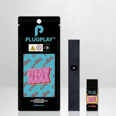 Introducing the PLUGPLAY™ AIO—your new everyday essential. This all-in-one package pairs our sleek, redesigned 300mAh rechargeable battery with your favorite PLUG™ in a single grab-and-go kit. Engineered with optimized voltage specs, USB-C fast charging, and a compact, pocket-friendly build, the AIO is the perfect addition to your PLUGPLAY™ collection. Non-disposable and designed to match your lifestyle—just plug, play, and keep it moving. About PLUGPLAY™ New York Exclusive Strawnana: We're bananas about Strawnana! Indulge in this sweet and flavorful indica dominant hybrid that'll bring you to a euphoric headspace while also keeping you mellowed out and ready for some R&R. Effects include elevated happiness, creativity, and a one way ticket to cloud 9. Get ready to experience for yourself why we are so berry in love with Strawnana!