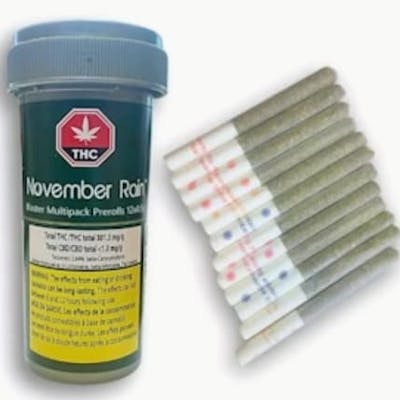 November Rain pre-rolls brings together one of the most popular B.C strains in 2025 to the Alberta Customer. November Rain Blasters takes the high-quality premium flower and combines it with NR's customed flavour induced filters bringing a new experience to a very dated genre.The variety pack offers a great variety pack with the same premium quality hybrid flower, with all fantastic full fresh flavored filters: Mango, Strawberry, Blueberry and Pineapple