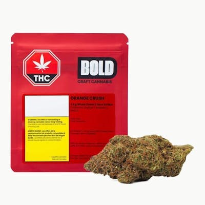 Orange Crush combines California Orange x Blueberry to create a citrusy, euphoric sativa dominant strain. These dense, sticky buds have strong aromas of orange, sweet citrus, and diesel. BOLD Craft Cannabis is indoor grown, small batch, hang dried, slow cured and hand trimmed.