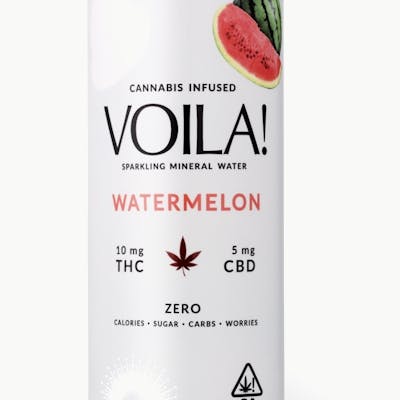 Delicious HIGHdration. A balanced flavor of summer all year long. Our watermelon sparkling water is mildly sweet and thirst quenching. This is a beverage defined by its function: refreshing, uplifting and mild. With low dose THC and CBD, and zero sugar, VOILA! offers a sense of ease to both the mind and body. Subtle herbal notes are carefully balanced with the sweet essences of fruit, infused with sun grown full spectrum live resin, and expertly carbonated for a crisp finish.