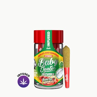 Indulge in a fruity paradise with Jeeter's Apples & Bananas Infused Pre-Roll! This pre-roll blends the delightful flavors of crisp apples and sweet bananas, creating a complex yet harmonious taste profile. Each joint is meticulously crafted and infused with high-quality concentrate, ensuring a smooth, flavorful smoke that dances on your taste buds. The Apples & Bananas Infused Pre-Roll is a testament to potency. Infused with premium concentrate, it promises a robust and consistent high. Jeeter's attention to detail guarantees an even burning and enduring potency, so you can relish every puff without any compromise on quality. Convenience and excellence come together in Jeeter's Apples & Bananas Infused Pre-Roll. Perfect for moments when you want a powerful yet flavorful cannabis experience, this pre-roll is your ultimate go-to. Whether you're aiming to unwind, rejuvenate, or simply savor the delightful taste of apples and bananas, Jeeter's pre-roll makes the experience effortlessly enjoyable.