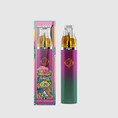 he Sluggers Gram Slam Vape offers 20% more oil than competitors, packed with strain-specific flavors and powered by cutting-edge atomization and a ceramic coil for smooth hits. Featuring a cold start pre-heat function and USB-C fast charging, this vape combines innovation with convenience for the ultimate vaping experience. Maui Mango is a tropical hybrid strain celebrated for its juicy mango and citrus-candy flavor notes, with subtle hints of pine and earth. It delivers a balanced, uplifting head high paired with soothing body relaxation—ideal for easing stress, enhancing mood, and boosting creativity. With vibrant orange hairs, dense buds, and a rich terpene profile led by myrcene, it’s as aromatic as it is effective. Perfect for daytime or afternoon use, Maui Mango offers a flavorful escape with lasting comfort.