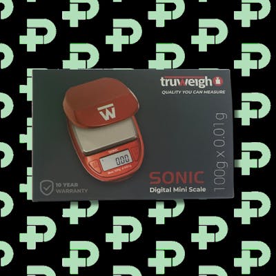 The SONIC digital mini scale features a round, compact design that fits nicely in a pocket or travel bag. The hinged cover can be removed to use as a weighing tray for added versatility. Results are easy to read on the blue back-lit LCD in any lighting condition. This scale is perfect for arts and crafts, hobbies, and in cash and carry stores and headshops. Built-in overload protection helps prevent damage to the scale. Other features include power-saving Auto-Off after 3 minutes of inactivity, Tare/Zero feature for subtracting the weight of a container or expansion tray, and easy one-touch calibration. Includes two AAA batteries. Backed by a Ten Year Limited Warranty. Truweigh: Quality You Can Measure. Features: Max Capacity: 100g / Readability: 0.01g Easy One-Button Calibration Tare/Zero Convert Automatically Between: g, oz, ozt, dwt, ct, gn Built-in Overload Protection Backlit LCD for easy reading Power-Saving Auto-Off (180 sec) Weight: 0.2094 lbs