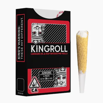 From the legendary brand Kingpen, Kingrolls are premium joints made with only whole nug flower, infused with Kingpen cannabis oil and coated in golden kief. Kingrolls are highly potent, handcrafted, flavorful pre-rolls available in a variety of complimentary flower and oil strain combinations as well as sizes for every kind of sesh.