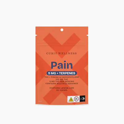 Pain Soothing Lemon Lime + Terpene Chews bring a sweet-meets-tart burst of flavor to your day, blending bright lemon and smooth lime in a balanced, hybrid profile. Infused with pinene and caryophyllene, these naturally derived terpenes add a distinctive aromatic complexity that makes each chew a refreshing experience, any time of day. Available in 5mg and 25mg strengths, these chews are made with high-quality, natural ingredients and consumer tested to ensure consistent flavor and quality. Gelatin-free and infused with natural colors and flavors, they’re a plant-based indulgence crafted for those who appreciate flavor as much as feel.