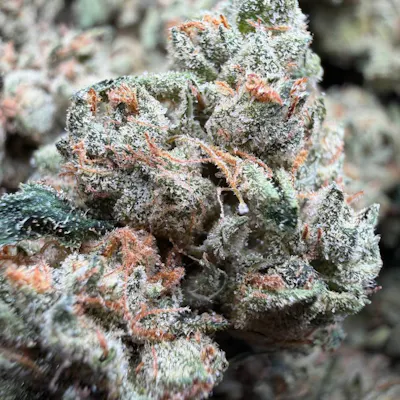 SFV OG, also known as "San Fernando Valley OG" to many members of the cannabis community, is a potent indica dominant (70% indica/30% sativa) phenotype of the OG Kush strain created by breeders at the infamous Cali Connection farms in the San Fernando Valley. Users describe the SFV OG high as one with an almost immediate onset of relaxing and sedative effects that leave you feeling moderately couch locked with a light pressure in mind and body that is pain relieving. These effects are accompanied by a feeling of elevation and euphoria that is balanced by the deep indica effects. Due to these potent effects, SFV OG is an ideal strain for treating patients suffering from conditions such as mild to moderate cases of depression, chronic pain due to injury or illness, muscle spasms, and stress. SFV OG has an aroma of tangerines with a slight touch of diesel and a taste of citrusy pine with a sweet diesel aftertaste upon exhale. SFV OG buds have small dark army green nugs with olive green leaves, reddish brown hairs, and a fine layer of white trichomes and resin.