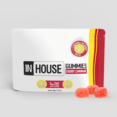 Description: InHouse Cherry Lemonade Gummies deliver a refreshing burst of tangy citrus and sweet cherry in every bite. Made with full-spectrum THC and crafted for consistency, these vegan gummies are naturally flavored with real fruit juice and contain no preservatives or high-fructose corn syrup. Whether you're relaxing, recharging, or heading out with friends, these sugar-coated treats are an easy way to elevate your day—your way.