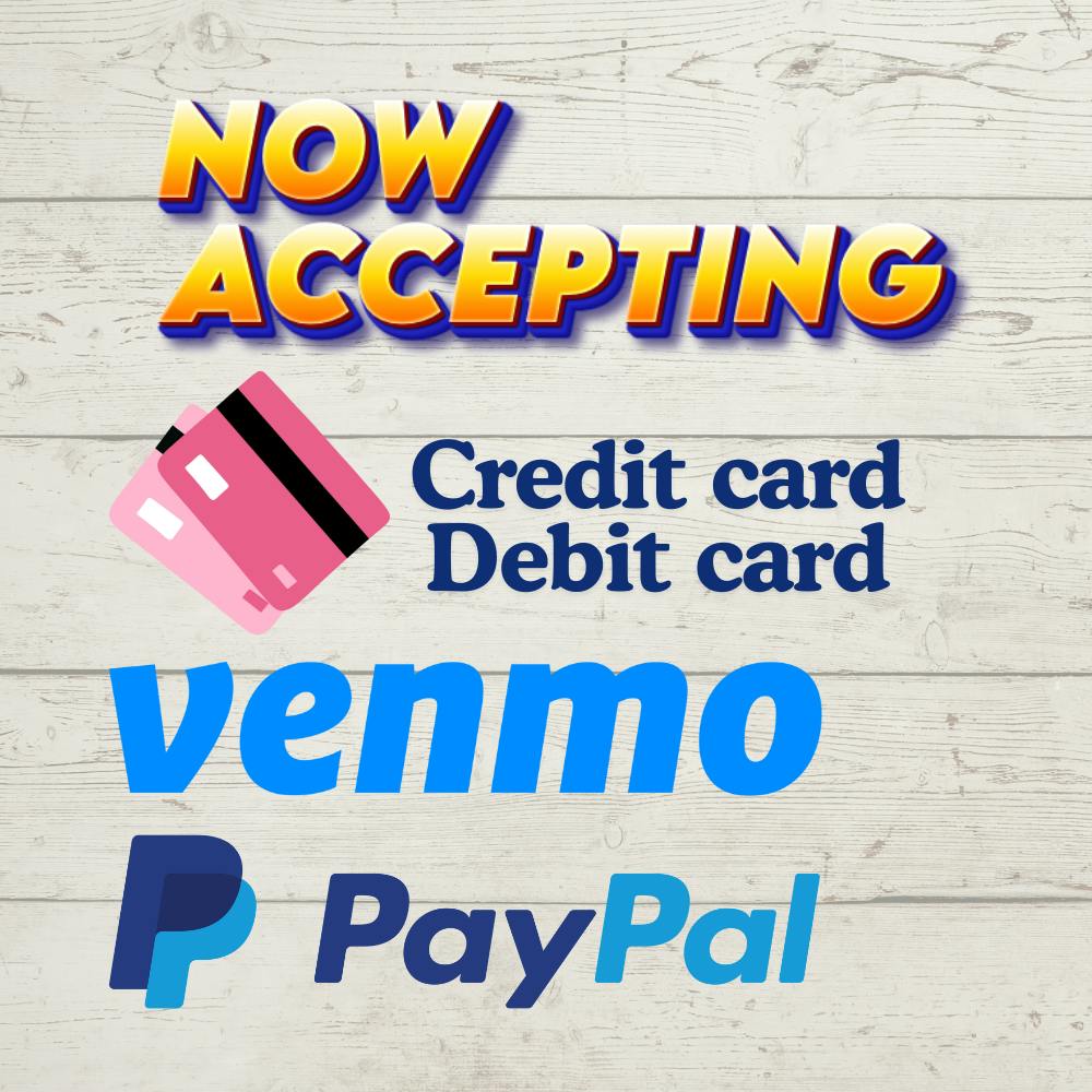 We accept Credit & Debit, PayPal, and Venmo!