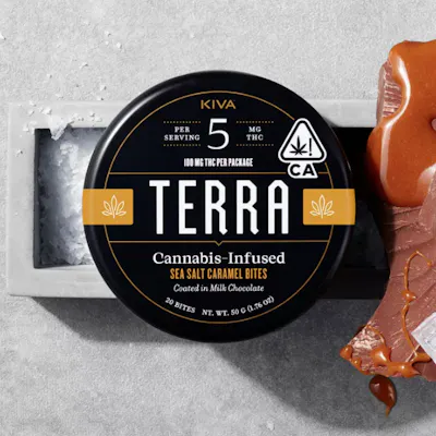 Sea Salt Caramel Terra Bites boast delicious, rich and smooth caramel centers coated in creamy milk chocolate and sprinkled with Pacific sea salt. These bites have a sweet, buttery flavor that finish with a salty kick. Ingredients: Milk Chocolate (Sugar, Cocoa Butter, Milk, Cocoa Mass, Sunflower Lecithin, Vanilla), Tapioca Syrup, Sugar, Cream (milk), Palm Kernel Oil, Sea Salt, Gum Arabic, Cannabis Extract, Natural Flavors, Confectioner's Glaze, Sucrose, Glucose Syrup. Contains milk. Made in a facility that processes nuts, soy and gluten. (License No. CDPH-10002402)