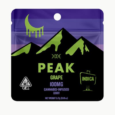 Discover the Grape Indica Peak, where each gummy is packed with relaxation and indulgence. With a single precisely dosed 100mg THC gummy, this flavorful treat offers a blissful escape.
