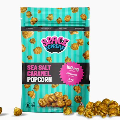 Space Poppers! Caramel Popcorn w/sea salt | ~50 large kernels | 100mg THC | ~2mg per kernel | Full-Spectrum Gluten-Free Indulge in our Sea Salt Caramel Popcorn, a handcrafted delight made with premium popcorn and infused with THC and CBD. Each micro dose offers a deliciously fun snack, allowing you to enjoy a blissful moment. Perfect for sharing with friends or treating yourself to a bit of elevated relaxation.