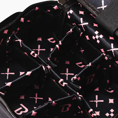 9" x 6.5" x 4" Smell Proof Includes combination lock Includes adjustable shoulder strap Velcro Partition for Custom Compartments Magnetic Flap compatible with Small Rolling Tray (sold separately)