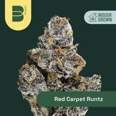 Red Carpet Runtz | Indoor 3.5gThis unique-smelling plant has a distinct herbal, piney quality along with its gassy, earthy sweetness. Perhaps due to its limonene dominance, the effects of this one may potentially be less heavy and more suited for early evening socialization than it is to bedtime.Lineage: (Red Velvet x Afghanimal) x Runtz