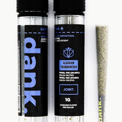 A pre-roll joint of premium DANK Alaskan Thunder Fuck flower rolled in classic joint paper.