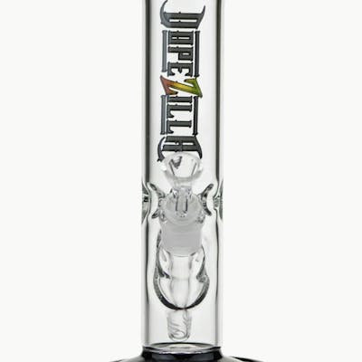 This sturdy Slimmzilla bong by Dopezilla looks awesome and provides great hits.The Slimzilla is made from quality borosilicate glass and measures 10 inches in height. It features colored accents on the foot and mouthpiece. It also features a colored Dopzilla logo on the straight tube.The Slimzilla comes delivered with an inside-cut 14 mm slitted diffuser downstem and a male 14 mm herb bowl with handle. The handle makes it easy to lift the bowl, and it doubles as the perfect roll stopper as well. The bullet-hole ice pinch allows you to place a few ice cubes in the top of the tube for that extra bit of cooling of the smoke that makes all the difference.SPECS:• Made with High quality borosilicate glass• Inside-cut 18.8mm > 14.5mm slitted diffuser• Male 14.5mm herb bowl• Ice notches• also features a colored Dopzilla logo on the straight tube.• No carb hole