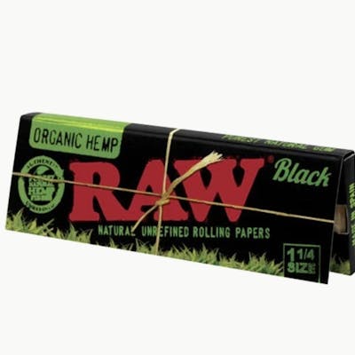 RAW Black Organic HempReleased in celebration of 16 years of RAW! RAW Black Organic Hemp is the thinnest, slowest burning paper we’ve ever made. Each leaf is incredibly thin with very low porosity so it burns very slow and preserves your terps.RAW Black was created for a new generation as the next level of top shelf smoking materials. For expert smokers only!RAW Black Organic Hemp 1¼: 50 leaves per pack.