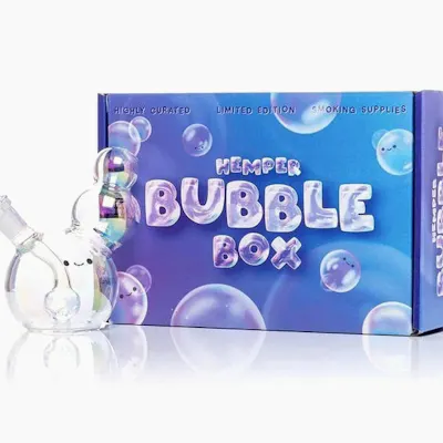 The Bubble Bong, a petite and handheld wonder, captures the essence of stacked soap bubbles with its lovable face, iridescent finish, and a functional stem percolator. This imaginative piece adds a touch of floating charm to your smoking experience.SPECS:Height: 4.5"Diameter: 3"Percolator: Bubble PercThickness: 5 mmBubble Style Body with Iridescent Finish Bubble Face DecalWhat's Included: (1) Bubble Bong(1) 14mm Male Joint Flower Bowl