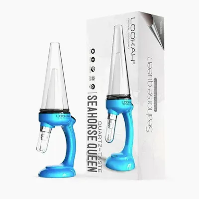 LOOKAH Seahorse Queen is a variable voltage Electronic Dab Straw. The three preset voltages let you choose between a full-flavor experience and cotton ball clouds. The large bubbler provides the all-important cooling to ensure a smooth taste and less irritation on the throat or lungs so you can enjoy more significant hits. The glass is interchangeable with the LOOKAH Dinosaur, Unicorn, and Seahorse Max vaporizers, which brings another level of customization. The Seahorse Queen device comes with two Lookah 510 see-through quartz coils that deliver superior flavor and allow you to see the vapor production. This dab straw can work with the other four Lookah Seahorse wax coils, giving users a rich choice. Whether you are looking for the ultimate taste, large clouds, wax savings, or durability, you can find it in these coils.The quartz tip is angled slightly to offer a better vaping experience, allowing you to see your wax container while inhaling so you can monitor your dosage.The removable glass bubbler and direct airway make it easy to clean with the included cleaning brush. Just remove the tip and glass bubbler to clean the airway. But that's not all. The device features an 800mAh battery built-in and type C USB charging with pass-through technology, which means you can vape while recharging it. The ergonomic tactile power button and integrated stand design let you use the Seahorse Queen with one hand while the other can hold your wax concentrate to the tip. The anti-slip grip on the base of the Queen ensures it stands firm and gives complete control. The device is effortless to use, with an intuitive one-button interface and LED indicator lights. The lights around the side and under the glass bubbler illuminate according to the voltage setting while the device is heating, giving you a visual treat. The base also includes four LED lights to indicate the remaining battery charge in 25 percent increments.How To Use the Seahorse Queen:Turn on/off the Seahorse Queen dab pen by pressing the power button five times quickly.The light will flash three times in the color of the preset voltage to indicate whether it is on or off. Change the voltagePress the power button twice to change the voltage. The The LED light on the side and under the bubbler will flash three times to indicate the voltageGree 3.2V, Blue 3.6V, or White 4V.