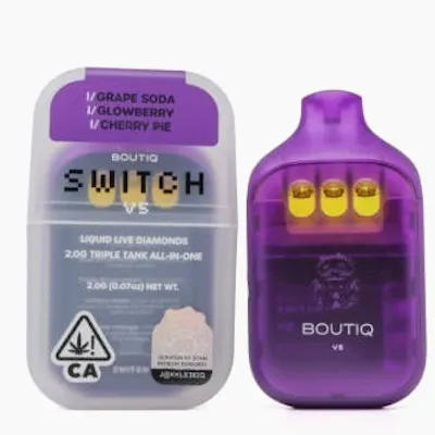 Boutiq Switch V5 | Grape Soda (I) x Glowberry (I) x Cherry Pie (I) | Liquid Live Diamonds Triple Tank Vape 2gDiscover the Boutiq Switch V5 – a revolutionary advancement in the world of disposable vape pens! Featuring a pioneering three-chamber structure, this elegant device offers three unique, freshly crafted flavors in one handy package, enabling effortless transitions between them with each inhale.Designed for unparalleled enjoyment and ease, it's the latest essential from Boutiq, ideal for vape aficionados seeking diversity and top-notch quality while on the move.