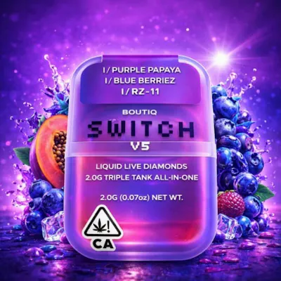 Boutiq Switch V5 | Purple Papaya (I) x Blue Berriez (I) x RZ-11 (I) | Liquid Live Diamonds Triple Tank Vape 2gDiscover the Boutiq Switch V5 – a revolutionary advancement in the world of disposable vape pens! Featuring a pioneering three-chamber structure, this elegant device offers three unique, freshly crafted flavors in one handy package, enabling effortless transitions between them with each inhale.Designed for unparalleled enjoyment and ease, it's the latest essential from Boutiq, ideal for vape aficionados seeking diversity and top-notch quality while on the move.