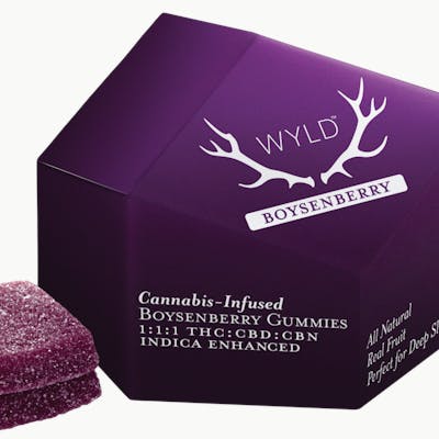 Experience restful nights with WYLD Boysenberry 1:1:1 Gummies, a meticulously crafted edible that combines the therapeutic benefits of THC, CBD, and CBN. Designed for those seeking a natural sleep aid, these gummies offer a harmonious blend of cannabinoids to promote relaxation and tranquility. ▶ Key Features Plant Type: Indica-enhanced formulation for calming effects. Cannabinoid Profile: Each gummy contains 10mg THC, 10mg CBD, and 10mg CBN, totaling 100mg of each per package. Flavor & Aroma: Rich boysenberry flavor with a hint of mixed berries, offering a delightful taste experience. Effects & Use: Promotes deep sleep, eases stress, and supports overall relaxation; ideal for nighttime use. Quality Highlights: Made with real fruit, natural flavors, and a blend of terpenes including linalool, myrcene, beta-caryophyllene, and terpineol for enhanced effects. ▶ Why Choose WYLD? WYLD is renowned for producing high-quality cannabis edibles that combine real fruit flavors with consistent dosing. Their commitment to excellence ensures that each gummy delivers a reliable and enjoyable experience, making them a trusted choice for both new and seasoned cannabis consumers. ▶ Available at SilverLeaf Dispensary – New Jersey Discover the soothing effects of WYLD Boysenberry 1:1:1 Gummies at SilverLeaf Dispensary. Place your order online and pick up in-store at our New Jersey location. Experience the perfect blend of flavor and relaxation with these expertly crafted gummies.