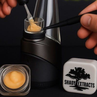 Cookies & Chem by Shady Extracts is a hybrid cannabis strain produced as a live resin concentrate, featuring a unique blend of Girl Scout Cookies (GSC), Stardawg, and Starfighter genetics. This strain is celebrated for its complex flavor profile, mixing sweet, cookie-like notes with sharp, gassy funk and chemical undertones, alongside subtle hints of apricot or citrus. The effects are typically uplifting, focused, and euphoric at first, with a relaxing body sensation as the experience deepens—making it a popular choice for managing pain, anxiety, and stress. Its aroma and taste pair dessert-like sweetness with diesel and chemical notes, providing a memorable and flavorful experience. Shady Extracts focuses on purity, producing full-spectrum cannabis extracts with no additives or artificial terpenes, highlighting the natural attributes of the plant. Crystal-covered buds, smooth smoke, and a balanced high make Cookies & Chem an appealing option for those seeking rich flavors and a well-rounded effect.
