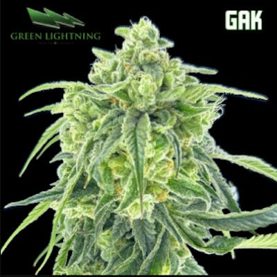 GAK from Green Lightning is a hybrid cannabis strain bred from G13 and AK47, grown by the New Jersey-based Green Lightning, and available in large-bud and smalls formats. This strain is designed for those seeking full-bodied effects without excessive sedation. The aroma profile of GAK is strongly gassy with sharp chemical notes and undertones of pineapple and floral, making its presence notable as soon as the jar is opened. The flavor is sweet and floral throughout the session, with the fruity notes adding a soft edge to its prominent diesel character. Effects begin with uplifting and mentally stimulating sensations, enhancing mood and sociability before shifting into a mellow, body-soothing finish. GAK’s relaxing qualities provide a deep, lingering buzz that unwinds muscles and quiets the mind, making it well-suited for late afternoons or evenings without completely couch-locking the user. This strain is appreciated for its balance of aroma, potency, and relaxing effects, tailored for regular or experienced users looking for robust quality flower from a reputable local brand.