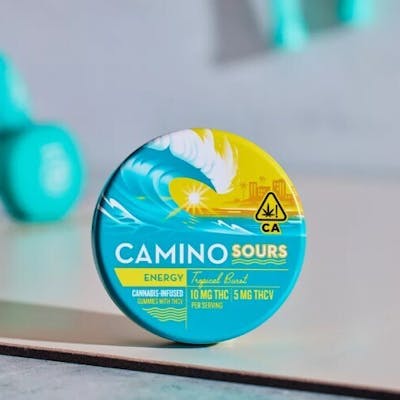 Have you ever dealt with a demanding schedule, approaching deadlines, and a sense of fatigue creeping in? This is precisely when Camino Sours Tropical Burst Energy gummies step in to give you just the boost you need. Packed with 10MG of THC and 5MG of THCV with sativa-like terpenes and the vitamins B6 and B12 combined with the perfect amount of caffeine (10mg), these gummies are your ticket to an enlivened experience. THCV is your energy-boosting ally, potentially enhancing metabolism and curbing appetite. It ensures a clear-headed journey ahead. Vitamin B6 is a prominent player in the body’s energy-production process to give your body the fuel it needs for physical activity. Vitamin B12 helps keep your body’s blood and nerve cells happy. Caffeine (10mg per serving), the world’s most popular stimulant, is renowned for its mood-enhancing properties. We add just enough to support increased alertness and a reduction in fatigue, providing a pep in your step equivalent to half a cup of iced tea. Whether you're about to embark on a thrilling adventure, or simply need a boost to seize the day, Tropical Burst Energy Camino Sours are your go-to choice for an invigorating experience that propels you forward with newfound vitality.