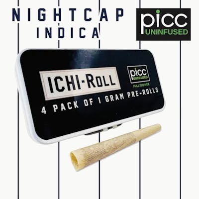 Ichi-Roll | Pre-rolls 1 Gram 4-Pack (4G) | Uninfused Pre-Rolls Mixed-light full flower pre-rolls, utilizing patented PICC uninfused platform for the perfect burning experience. Strain: Night Cap (Indica)