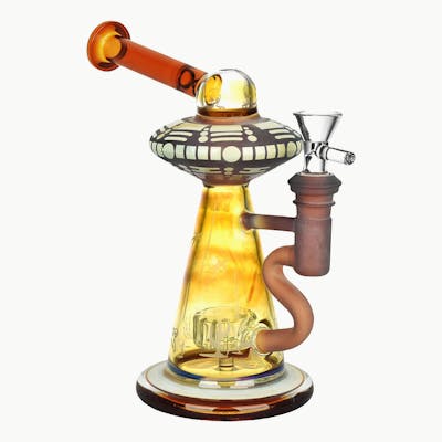 Embark on an interstellar journey with the "Take Me To Your Leader" Water Pipe, a 7.75-inch marvel that stands out in any collection. Featuring a 14mm female joint and an eye-catching amber finish, this water pipe is not just a smoking accessory—it's a conversation starter. Its unique design invites you to ponder the mysteries of the universe while enjoying your favorite herbs. KEY FEATURES: 7.75" Height: Offers a comfortable smoking experience. 14mm Female Joint: Compatible with a wide range of attachments. Amber Finish: Adds a touch of elegance. SPECIFICATIONS: Type: Water Pipe Height: 7.75 inches Joint Size: 14mm Female Finish: Amber Material: High-Quality Borosilicate Glass Important Safety Information: For legal adult use only. Always use responsibly. The "Take Me To Your Leader" Water Pipe is more than just a smoking accessory—it's a piece of art that combines functionality with a sense of wonder. Its unique design and quality construction make it a must-have for anyone looking to add a touch of whimsy to their smoking experience.
