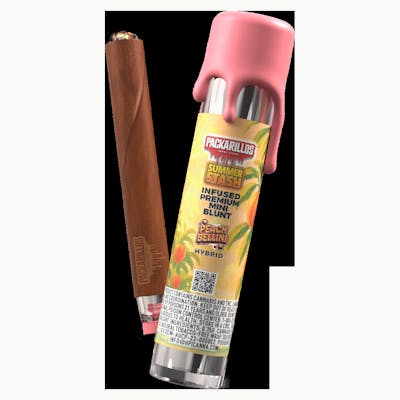 HYBRID Bubbly, juicy, and just the right amount of bougie—Peach Bellini is a peach-forward strain with floral notes and a velvety, relaxing body high. Hand-rolled into our signature Packarillo mini-blunt for that perfect summer brunch-to-sunset transition. Packarillos Infused Premium Mini Blunts: A premium personal size blunt packed with infused flower for a robust flavor and bold smoke. Rolled in a tobacco-free hemp wrap and finished with a glass filter for a smooth satisfying experience.