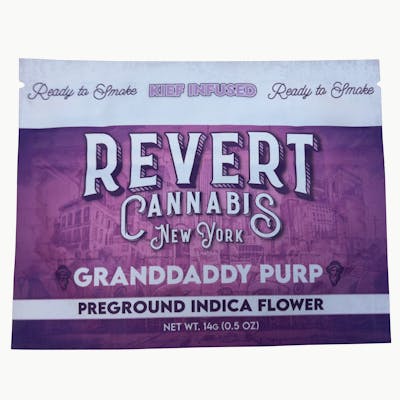 INDICA Revert’s pre-ground Granddaddy Purp (14?g) is a kief-infused, indica-dominant delight that delivers the classic grape-berry aroma and flavor of Granddaddy Purple, with rich notes of sweet fruit, earth, and spice. Its dreamy euphoric lift gently transitions into full-body relaxation perfect for unwinding, easing tension, soothing aches, or settling into a restful evening all in a ready-to-use, on-the-go package with no grinder needed