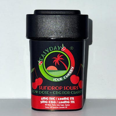 You fell in love with our original Sun-shaped gummies, so we’re bringing the sunshine back—just a little lighter. Meet Sundrop Sours: our friendly, low-dose version infused with THC and CBG. They may be smaller in strength, but they’re bursting with the same bold Easyday flavor you know and love—with a tangy, sour twist to keep things buzzing this summer! Easyday Sundrops Sours – Sour Cherry ??? Clear head. All-day elevation. Say hello to your new cherry crush. These vegan THC + CBG-infused gummies pack a punch of sour cherry tang with a smooth finish that tastes like cherry candy with a fun edge! Each Sundrop gummy delivers 5mg THC and 5mg CBG, giving you that sweet buzz with a side of mental clarity. Crafted with clean, plant-powered ingredients like organic cane sugar, tapioca syrup, and 100% organic pectin.