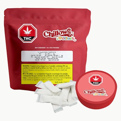 Potluck’s world of flavours without the smoke. Potluck Chillows feature an infusion of THC isolate and burning hot cinnamon flavours for a flavourful and discreet product for cannabis consumers. With 10 mg per pouch, Hot Cinnamon Chillows is a hot rush of spicy cinnamon flavour.