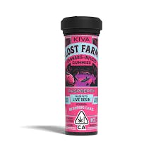 10mg THC per piece | 100mg THC total in 10 pieces Infused with Wedding Cake Lost Farm Fruit Chews and Gummies are strain-specific, plant-based confections made with 100% live resin. These edibles immortalize the fresh cannabis plant and harmoniously combine it with fruit flavors that enhance each strain’s unique profile. The result is a full-sensory, ultra-fresh, and extra-strength edible STRAIN NOTES: Boasting the tart fruitiness of Cherry Pie and the creamy vanilla sweetness of GSC, this potent indica-dominant hybrid strain is accented by a background of earthy, peppery flavors. FLAVOR NOTES: The tart, fruity and vanilla aromas of the Wedding Cake strain give character to this gummy’s sweet, bright berry flavors. INGREDIENTS: Sugar, Tapioca Syrup, Water, Pectin, Citric Acid, Raspberry Flavor WONF, Sodium Citrate, Cannabis Extract, Spirulina Extract for Color. Disclaimer: Because of the unique nature of the cannabis industry, each Kiva product is produced in the state in which it is sold. Accordingly, the content of THC and other cannabinoids may vary depending in which state you purchase your product. Similarly, the ingredients and allergens may also vary slightly by state. For the most accurate potency, ingredient, and allergen information, please refer to your product package.