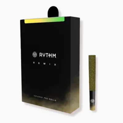 Bright and tropical yet earthy, this aromatic, invigorating hybrid strikes the perfect balance of flavor and feeling. Remix pre-rolls feature RYTHM premium indoor flower double infused with THCa diamonds and kief for maximum potency and fine-tuned with 100% natural terpenes. Explore your taste in premium cannabis with RYTHM's curated lineup of expertly cultivated, award-winning strains. When it comes to flower, we love the classics-but our remixes are a hyper potent, flavorful new way to FIND YOUR RYTHM.