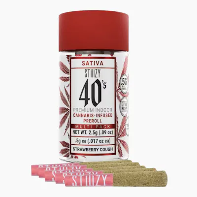Elevate your pre-roll game. STIIIZY 40's pre-rolls are setting the standard with high potency, cannabis infused joints coated evenly with kief. Using our proprietary live resin infusion methods, we’ve designed every pre-roll to be potent with a unique profile profile. With a smooth inhale and tasteful exhale, each and every STIIIZY 40's is packed with premium, high quality flower specifically made to ensure a potent and long-lasting high. Spark up the 40's.