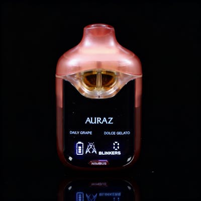 The Auraz Nimbus is a 2g dual-chamber Liquid Diamond disposable built for precision and consistency, featuring a digital display and usage tracker for reliable hits every time. This edition pairs Daily Grape with Dolce Gelato, crafting a flavorful, indica-leaning experience made for deep relaxation.
