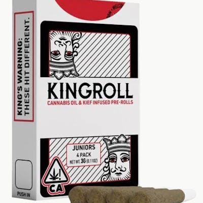 The Zerealz x Watermelon Sorbet Kingroll Juniors blend the nostalgic sweetness of fruity cereal with the refreshing taste of ripe watermelon for a perfectly balanced, mouthwatering smoke. Each Kingroll Junior is crafted with premium Zereals flower, infused with strain-specific distillate, and dusted in kief to deliver a smooth, flavorful, and highly potent experience.Infused perfection in every puff.Conveniently packed in a 4-pack of half-gram pre-rolls, these Kingroll Juniors are perfect for solo sessions or sharing with friends. Expect uplifting, euphoric vibes that settle into a mellow, relaxed state — ideal for daytime enjoyment or winding down with a smile.