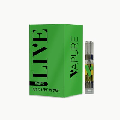 Hybrid | Live Resin Cartridge Total Volume: .5g Vapure Live Resin is like hitting the plant on its best day - fresh-frozen, full of flavor, and smooth from first puff to last.