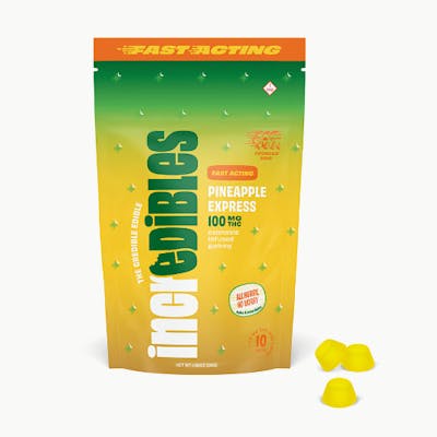 Indulge in the tropical paradise of Incredibles Pineapple Express Fast Acting Gummies 10pk. Bursting with juicy pineapple flavor, these gummies are perfect for those on-the-go moments when you need a swift and balanced experience to complement your active lifestyle. Crafted from pure cannabis oil, each bite ensures precise dosing for consistent effects every time. These fast-acting gummies offer an expedited onset without compromising taste or efficacy, making them ideal for any time of day. Whether you're looking to kickstart your morning or unwind after a long day, these delightful treats have got you covered! Embrace the harmonious blend of relaxation and vitality that this Hybrid strain brings, all packed into convenient and delicious gummy form.