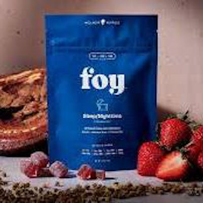 Elevate your nightly routine with a healthier alternative that surpasses the standard gummy. Foy Nighttime vegan chews are consciously formulated with authentic non-GMO fruit purées, delicately coated in powder derived from natural strawberries, and enriched with a potent adaptogen blend of USDA Certified Organic Reishi mushroom, USDA Certified Organic Valerian Root, and USDA Certified Organic Chamomile. These CO2-extracted, CBN-enriched chews are specially designed to promote optimal sleep quality and help reestablish a harmonious, restful sleep pattern. With 5mg of THC, 5mg of CBD, and 5mg of CBN per chew, Foy Nighttime Chews offer an unparalleled 300mg of total cannabinoids, elevating your nighttime routine to bring you the gift of rejuvenating slumber. Experience the Benefits: THC: Each Foy chew is crafted with premium CO2 extracted cannabis oil. CBD: Known for its calming properties, CBD helps promote relaxation, aiding in a more peaceful sleep. CBN: Renowned for its sedative effects, CBN contributes to improved sleep quality and the reestablishment of healthy sleep patterns. USDA Organic Chamomile: A natural relaxant, chamomile enhances the soothing effects, promoting a tranquil and restful night's sleep. USDA Organic Reishi Mushroom: With adaptogenic properties, Reishi supports stress reduction and contributes to a sense of calm, ideal for bedtime tranquility. USDA Organic Valerian Root: Traditionally used to alleviate sleep disorders, Valerian Root aids in achieving a deeper, more restful sleep.