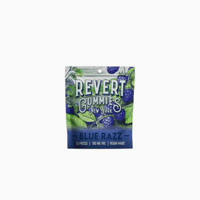 Revert Blue Razz 100mg Gummy Pack Revert THC Gummies are crafted for consistency, convenience, and a clean edible experience. Each package contains 10 easily separable 10mg portions (100mg total) for simple, precise dosing. Made with cannabis distillate and a pectin-based (gelatin-free) formula, these gummies offer a smooth, reliable effect and a soft, chewy texture, and are vegan-made. Blue Razz delivers a bold, tangy-sweet flavor with a bright, candy-like finish.