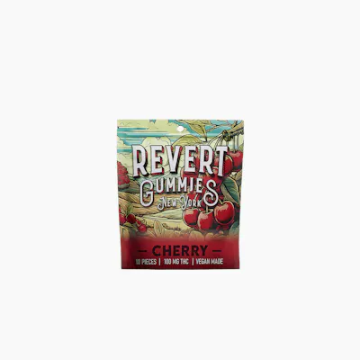 Revert Cherry 100mg Gummy Pack Revert THC Gummies are crafted for consistency, convenience, and a clean edible experience. Each package contains 10 easily separable 10mg portions (100mg total) for simple, precise dosing. Made with cannabis distillate and a pectin-based (gelatin-free) formula, these gummies offer a smooth, reliable effect and a soft, chewy texture, and are vegan-made. Cherry delivers a classic sweet-tart profile with a bright, balanced finish.